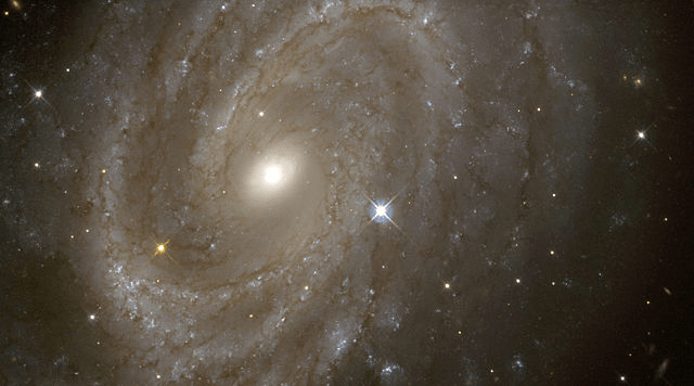 The galaxy is sometimes called the “backward galaxy.” Unlike most known spiral galaxies, whose spiral arms trail behind the rotation of the disk (in spiral galaxies, spiral arms usually follow the trail), NGC 4622 has a single inner arm that winds in the direction of rotation. Initially, scientists suspected the inner arm was the leading arm, but observations showed it is actually a trailing arm. The results of these observations were met with skepticism because the concept that a pair of spiral arms could lead was difficult to accept. Later, it was discovered that the galaxy has two new weak arms in the inner disk rotating opposite to the outer pair.