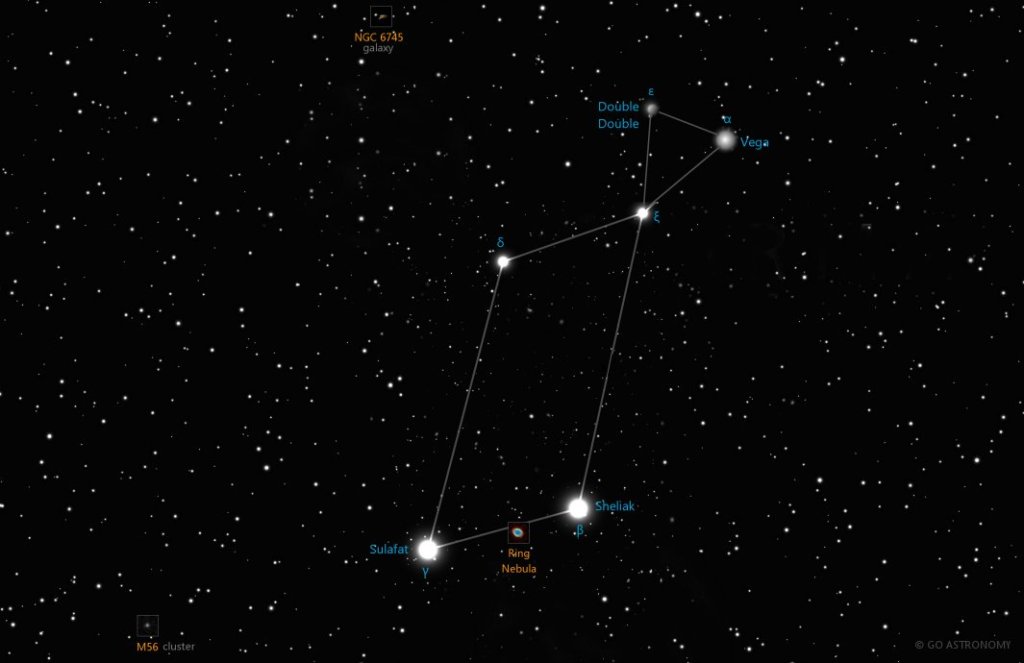 The constellation Lyra represents the lyre of Orpheus, a famous musician and poet in Greek mythology. Upon his death, he threw his lyre into the river; subsequently, Zeus sent an eagle (represented by the constellation Aquila) to retrieve Orpheus and his lyre and place them in the sky.