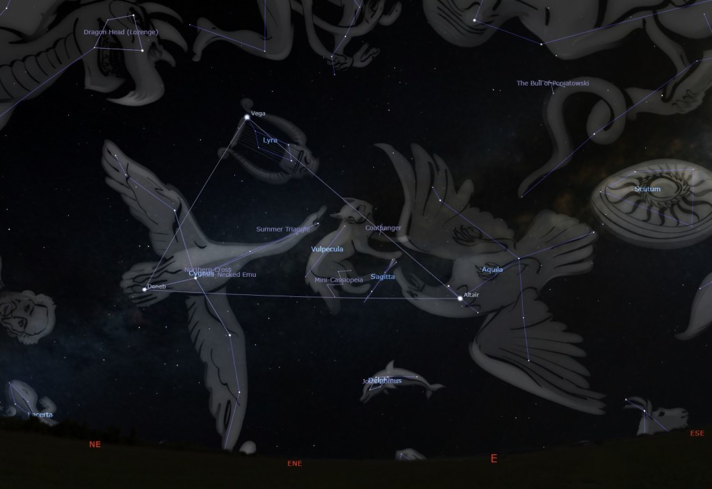 The constellation Lyra is often depicted as a vulture or an eagle carrying Orpheus’s lyre and was historically referred to as Aquila Cadens or Vultur Cadens, meaning “Falling Eagle” or “Falling Vulture.”