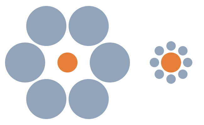 - (Visual reference: The Titchener circles/Ebbinghaus illusion – where two identical circles appear different in size based on the size of surrounding circles).