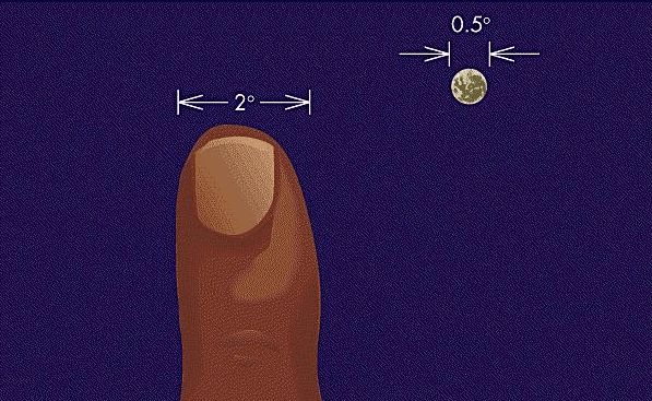 (Note: Even a finger can obscure the Moon if placed close enough to the eye; this is simply a function of angular diameter).